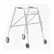 - Два колеса спереди. Модель «подстраховывает» во время движения, поэтому часто её можно увидеть в медицинских учреждениях. Из-за риска опрокидывания пожилым людям не рекомендуется выбирать такие ходунки для постоянного использования.