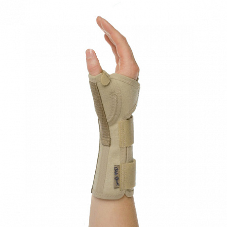 Фиксирует лучезапястный, запястно-пястные и I пястно-фаланговый суставы в функционально-выгодном положении.