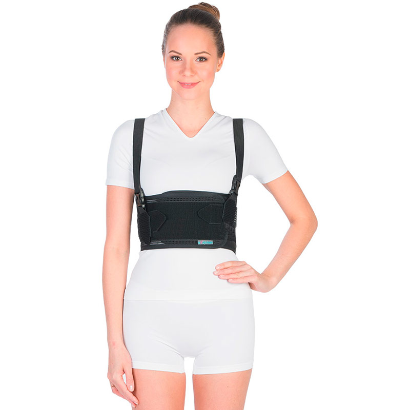 имеет нерастяжимую переднюю панель для надежной фиксации переднебоковых частей грудной клетки и эластичную заднюю часть для сохранения мышечного тонуса