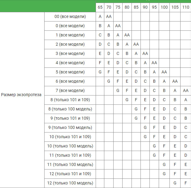 3. Мысленно проведите линию влево и определите какой экзопротез соответствует вашему размеру белья.