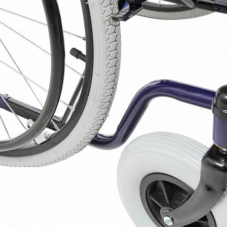 Стальная инвалидная кресло-коляска. Рама крестообразная, одинарная. Цвет рамы - синий.
