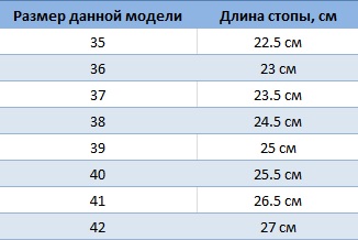 При выборе обуви правильно подбирайте ее по размеру и полноте с учетом индивидуальных особенностей стопы. Обувь не должна причинять Вам неприятных ощущений, стопа не должна быть сжата. В случае несоответствия размера возможна деформация обуви, расхождение швов, разрыв материала. При надевании расстегните или развяжите все застежки и отрегулируйте их по своей стопе.