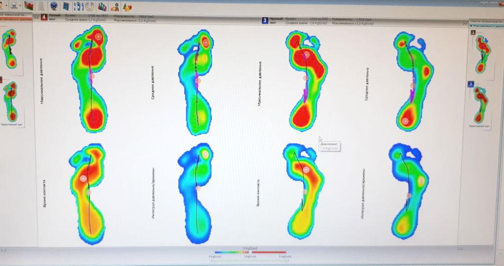 Эксперт делает цифровое изображение вашей стопы с помощью плантографа. По полученному снимку определяет состояние сводов стопы, зоны локальной перегрузки и распределение нагрузки на разные участки стопы. При соответствующих жалобах специалист также  проводит визуальную диагностику нарушений статики и динамики опорно-двигательного аппарата от плеч до стоп.